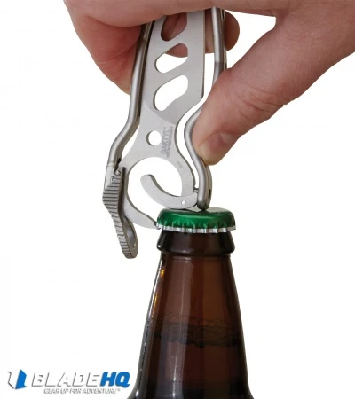 - Integrated carabiner at the base of the blade clips to a belt or bag and doubles as a useful bottle opener.